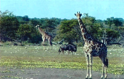 Als erstes lief uns ein Schakal über den Weg, gefolgt von Giraffen, Herden von Impalas, Gnus, Wasserbüffeln, Warzenschweinen - 40 Elefanten sahen wir entlang unserer Route, die an den in dieser Jahreszeit reichlich vorhandenen Wasserstellen grasten. Immerhin zeigte sich auch ein Löwe in beträchtlicher Entfernung.