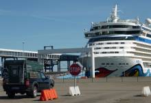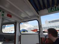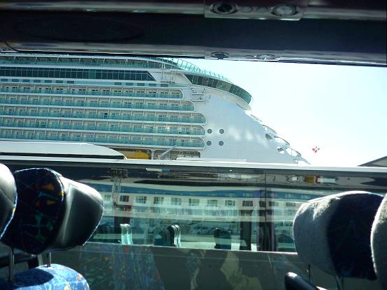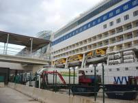Irgendwann ist endlich mal Schluss: Wir werden zum letzten Mal "ausgescannt", verlassen das Schiff über die Gangway, schnappen unsere Koffer in der Halle und gehen zum Transferbus, von dem aus fällt noch ein letzter Blick auf die AIDAmar ...