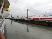 Irgendwann später werden wir von Kapitän Detlef Harms erfahren, dass zu dieser Zeit offenbar ein Lotse am Steuer ist, dem man dann allerdings die Steuerung aus der Hand nimmt und das Schiff wieder selbst manövriert. Wir haben schon eine deutliche Verspätung, als wir schließlich am Terminal Croisière, dem Kreuzfahrt Terminal am Quai Roger Meunier, festgemacht haben.