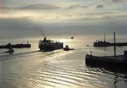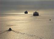 bis zu den Schemen der im Hafen ein- und auslaufenden anderen