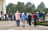 Wir erreichen das Denkmal auf dem Friedhofsgelände, eine halbkreisförmige Säulenreihe mit einer Bronzesäule im Zentrum, wo sich eine ganze Reihe von Amerikanern aufgestellt haben und in feierlicher Stimmung einem Sprecher zuhören, der traurige Geschichten erzählt. Einzelne Veteranen salutieren hier und auch Tränen werden selbst von jüngeren Leuten vergossen - es ist wahrlich erstaunlich, was hier mehr als 70 Jahre nach dem Geschehen erlebt werden kann!