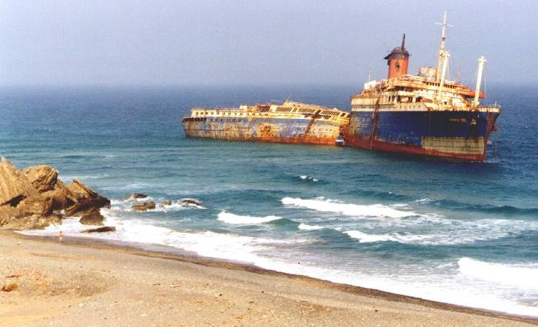 Meanwhile, her more imposing forward section survived, seemingly unfazed by the sea´s relentless attacks. The ship´s stout hull and equally strong supporting structures were riveted together, and to took years for Mother Nature to pry away pieces. But pry she did, first tearing away hull plating nearest the point of hull fracture. Still, eight years after grounding and despite storms, looting and lack of human care; the forward section was still largely there.