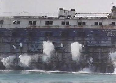Because of the shallow water where the bow section ended up, it probably will be decades before all signs of this once-proud ship completely disappear from human view. Until then, what may well mark the site of her demise will be a grim 'grave marker' of sorts consisting of her tortured remains ...