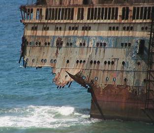 Over the past three years, storms have still not been able to complete the dismemberment of this once-proud ocean liner. The photograph on the right below was taken on 8 March 2010.