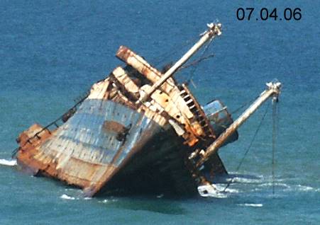 As the years went by, the forward section of the wreck - especially on the windward, i.e. the port side - began to display troubling images of much more significant structural deterioration. By mid 2005, a view of the wreck indicated that there was very little structure left on the port side to support the mass and weight of the structure that had maintained a constant five-degree port list for almost a dozen years.