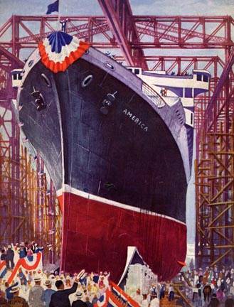 "Designed by Americans ... constructed by skilled American labor from materials provided by virtually every State in the Union ... decorated and furnished by leading American artists and craftsmen - the AMERICA could scarcely be a more "all-American" ship, or more completely equipped to assure you at sea the same high American standards of luxurious comfort and efficiency which you enjoy ashore. And once you are aboard, regardless of how high your enthusiasm may have soared, this magnificent liner will not disappoint you. She's the finest example of modern shipbuilding art."