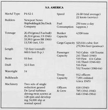 But AMERICA was already prepared for such possibilities, for the United States Maritime Commission had subsidized her construction and certain military measures had been inconspicuously incorporated into her design.