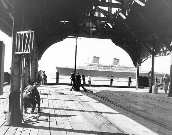 Between 1946 and 1964, things changed significantly. In 1952 she got a running mate - the famous SS UNITED STATES. For a time they both prospered, providing weekly service between the United States and Europe. But the late fifties / early sixties brought two disturbing changes - increasing, costly and disruptive demands from the maritime unions and the advent of transatlantic jet passenger service.