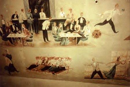 The décor of the cocktail lounge ceiling remained untouched - decorated with animated cartoons seemingly right out of New Yorker magazine - depicting life at sea in the 1930´s.