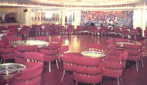 The ship’s original grand ballroom was enlarged but still retained its original atmosphere; described in pre-war promotional literature as being the vessel´s "most dramatic, gayest and sparkling space of all". A magnificent "circus scene" mural dominated the room´s forward bulkhead, behind the bandstand, adding just the right touch of festivity and a bit of frivolity.