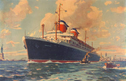 After the excitement of her maiden voyage was over, AMERICA settled into a routine of transatlantic crossings, making 15-18 round trip voyages a year. Her European port calls often included Bremerhaven. She was a favorite of many voyagers who ascribed to the old adage - getting there is half the fun - especially in the comfort and style that was the SS AMERICA.