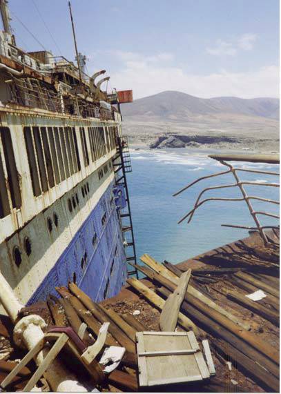 With this information in hand, in June of 1994, I wrote to the Direccion General de la Marine Mercante, based in Las Palmas, Lanzarote. Very kindly, he gave us the exact ship's position and confirmed that it was accessible by vehicle for photography purposes, but any attempt at boarding the wreck was forbidden. We decided to book a holiday to the island, in hopes of seeing MY ship one final time.