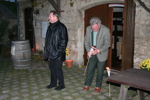 Trotzdem gelingt es uns, gegen 18 Uhr wieder am Tourismusbüro zu sein: Ing. Christian Seywerth wird heute Abend eine noch recht neue Idee umsetzen, den von ihm geführten Nachtwächterrundgang. Und es ist in der Tat eine spannende Veranstaltung: Für nur 7,- EUR pro Person wird ein Rundgang durch Purbach angeboten, die keine Fragen rund um den Hl. Martin offen lässt, der offensichtlich hier in der Gegend vor einigen Jahrhunderten tätig war.