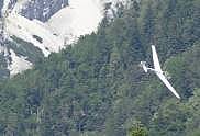 Auf dem Camp ist man mitten "im" Fluggebiet der zahllosen Segelflugzeuge, die sich hier in unmittelbarer Nähe des Flughafens Kranebitten tummeln - man sieht sie entweder schon beim Windenstart, beim Kreisen im Aufwind oder aber erst im Endteil, wenn sie mit leisem Pfeifen sehr tief über den einzelnen Campern auf ihre "Runway" zusteuern ...