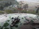 Das neue Szenario beeindruckt: Vor dem imposanten Rundgemälde ist nun auch eine vorgelagerte Landschaft zu sehen, in der alle möglichen Gegenstände sehr geschickt platziert sind. Von Baumstämmen und Zweigen über Kanonen, Helme, Trommeln und Lagerfeuerreste finden sich in diesem perfekten Diorama jede Menge Zutaten zum Schlachtgemälde, die eine sehr dichte Atmosphäre des Geschehens schaffen, in dessen Mitte der Besucher wie ein Beteiligter steht.