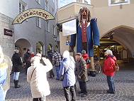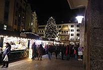 Die Innenstadt ist belebt wie immer mit unzähligen Touris, die Pferdefuhrwerke warten auf Gäste und allerlei Gaukler und Alleinunterhalter versuchen an die Münzen der Besucher zu kommen, darunter auch auffällig viele Obdachlose, die überall in der Innenstadt teils auf Pappdeckeln herumliegen und um Almosen betteln. Für die kleinen Besucher ist wohl der Christkindlmarkt am Innsbrucker Marktplatz mit Kasperltheater und Märchenstunde ein geeignetes Ziel, wo Märchen wahr werden und deren Hauptfiguren in der Riesengasse auch bestaunt werden können. Sogar kristalline "Weltsensationen" werden von Swarovski am Marktplatz präsentiert und ziehen ebenfalls viele Besucher an.