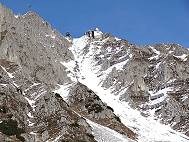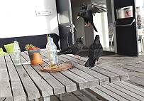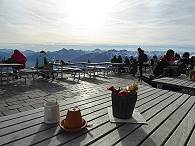 Wir fahren jedoch mit der Gondelbahn sofort weiter zur Seegrube: Bei fast völliger Windstille scheint es hier auf nahezu 2.000 m Höhe wärmer zu sein als unten - viele Besucher und auch ausdauernde Kletterer haben sich auf der Terrasse und in den Stuben eingefunden, um von hier aus den Tag zu genießen. Auch unsere besonderen Lieblinge, die Jochdohlen, sind unterwegs wie immer: Auf welchem Tisch auch immer sie etwas erjagen können, da versuchen sie ihren Anflug - gemeinsam mit ihren unglaublichen Flugmanövern an den Hängen wie immer ein unterhaltsames Schauspiel, dem man sich nicht entziehen kann und will.