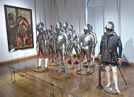 Wir gehen vorbei an Schaukästen der "Heldenrüstkammer", an "Gebrauchswaffen" des 17. Jahrhunderts in einer anderen Kammer sowie Selbstdarstellungen des ursprünglichen Sammlers. Die Exponate fallen bereits durch ihre Bezeichnungen auf, so gibt es Rüstungen zu sehen wie den "Riefelharnisch des Philipp Pfalzgraf bei Rhein", "Trabharnisch des Andreas Teufel von Guntersdorf", "Feldharnisch von Herzog Ferdinand von Bayern", "Sieben Knabenharnische", auch zusätzliche militärische Ausrüstung wie "Stechzeug", "Reissspiesse" und anderes.
