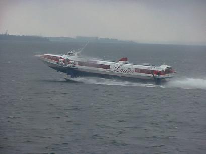 Glücklicherweise nähern wir uns Tallinn 30 Minuten früher als geplant. Eine Schnellfähre Helsinki-Tallinn rast am Finnjet vorbei, an Bord sicher ausreichend Finnen auf Euro-"Extratour" nach Estland ...