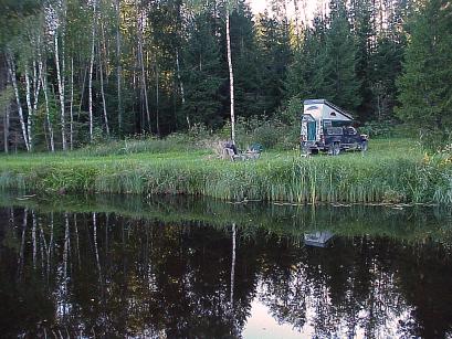 Also wird am Abend die Reise fortgesetzt, denn laut Infokarte soll es Richtung Viljandi einen weiteren Campingplatz geben. Dort angekommen ist allerdings kein derartiger Platz zu finden: Am Straßenrand parkt ein Auto mit drei Männern von einem Vermessungstrupp - die müssten doch wirklich wissen, wo es hier Campingplätze gibt?! Zuerst hören wir natürlich das obligatorische: "Do you have a tent?" und dann will man es ganz genau wissen: "What kind of camp?". Es wird wieder viel diskutiert, aber die Vermesser wissen nichts, rein gar nichts ...