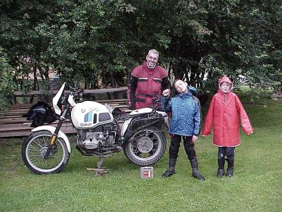 Obwohl es regnet und recht frisch ist, sind die beiden Kinder gut gelaunt und albern rum: Sie gesellen sich zu uns unter die Plane und unterhalten uns mit ihren neusten Witzen. Die Eltern organisieren in der Zwischenzeit einen Mietwagen für die Fahrt nach Riga. Mit CD's und Kugelschreiber vom Explorer Magazin ausgestattet verabschieden sich die Kinder. Wir wünschen der Familie viel Glück: Wie mag es ihnen wohl weiter ergehen?