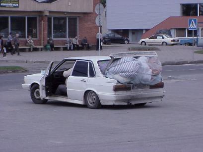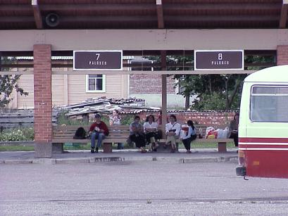 Wie im Baltikum üblich, befinden sich hier der Markt und auch der Supermarkt am Busbahnhof. Diese Busbahnhöfe sind wichtige Einrichtungen, an denen stets viel Trubel herrscht. Überlandbusse stellen hier die Verbindung zu den Ortschaften sicher. Bei den PKWs fällt auf, wie offensichtlich deren Herkunft ist: Aufschriften auf alten, teilweise recht rostigen Golfs, Polos, Fiestas u.ä. wie "Baby an Bord", "I ♥ Wuppertal" oder "FC Bayern" machen deutlich, wo die deutschen Gebrauchtwagen ihr Gnadenbrot bekommen ...