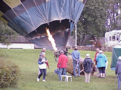 Ein lautes Geräusch weckt uns. Wir erkennen es sofort: Ein Heißluftballon wird gefüllt. Und der Blick nach draußen beweist es, tatsächlich, unten im Kessel wird für die holländischen Touristen ein bunter Ballon für die Fahrt über die Seen vorbereitet.