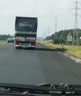 - in der mittleren Leitplanke Lücken, damit LKWs aus der Gegenrichtung wenden und sich in der Überholspur einfädeln können (!),