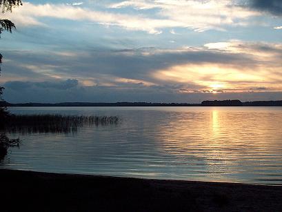 Am Abend kommt ein weiblicher "Warden" vorbei, der die Übernachtungspauschale kassiert. Sie will wissen, wie lange wir bleiben, denn die Saison ist mit dem Schulbeginn am 01.09. eigentlich zu Ende. Wir sagen, dass wir den morgigen Tag und vermutlich noch eine weitere Nacht hier verbringen möchten. Sie will nicht für zwei Nächte kassieren, lieber kommt sie morgen noch einmal vorbei. Wir bekommen einen Beleg, alles hat seine Ordnung. Als sie die gesammelten Pilze sieht, gibt sie noch Tipps, wo man noch mehr davon finden könne. Aber noch mehr brauchen wir wirklich nicht, der Wald sorgt überreichlich für uns. Selten kommen am Abend einige einheimische PKW´s vorbei: Leute steigen aus und verschwinden im Wald, um kurze Zeit später mit gefüllten Pilzkörben wieder abzufahren. Einige machen noch am Seeufer eine Pause, um den Sonnenuntergang zu genießen und ein Lagerfeuer zu entfachen.