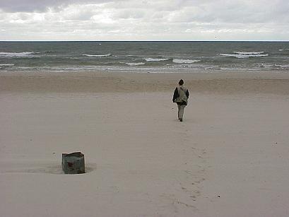 Kühl ist es geworden, ein ungemütlicher Wind weht. So schön der Sandstrand ist, das Wetter lädt nicht zum Baden ein. Nur eine stahlharte litauische Nixe tummelt sich im Wasser. Ansonsten sind wir allein, können uns aber das muntere Treiben an warmen Sommertagen gut vorstellen - und das reicht für heute ...