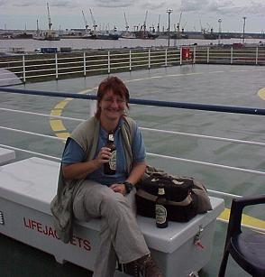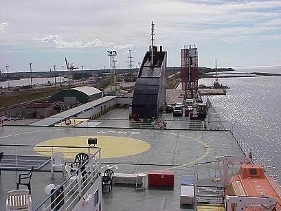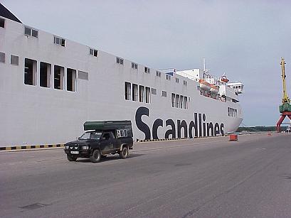 Auf der Fähre gilt wieder deutsche Zeit. Als Zahlungsmittel werden nur EUR entgegengenommen. Zu einem abenteuerlichen Kurs werden die restlichen Litas umgetauscht. Die Kantine hat nur kurz geöffnet. Das Abendessen ist gut und das reichhaltige Frühstück am nächsten Morgen sogar im Fährpreis inbegriffen. Die Fähre hat allerdings nur wenig zu bieten für den Zeitvertreib: Für die LKW-Fahrer gibt es einen Fernsehraum, in dem man vor lauter Zigarettenqualm das Programm kaum sehen kann. Ansonsten gibt es eine Bar. Das gezapfte Bier schmeckt nicht: Offensichtlich ist der Umsatz hier so gering, dass es abgestanden schmeckt, vielleicht ist aber auch noch die Zapfanlage defekt. Der geringe Umsatz erklärt sich zum einen mit dem Saisonende, zum anderen bevorzugen Litauer und Russen, die den Großteil der Passagiere ausmachen, härteren Stoff. Ihr teilweise wankender Gang lässt sich mit dem Seegang allein nicht erklären ...