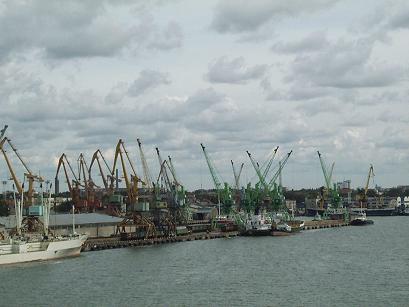 Die Fähre legt ab: Zwischen kurischer Nehrung und Klaipeda Hafen schippert die Svealand Richtung Ostsee. Die Ausfahrt ist schier endlos - Kran an Kran, Industrieruinen, Rostkähne und Tanks ziehen an uns vorbei.
