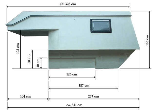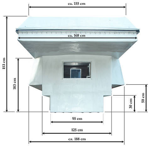 Und zum Berichtsabschluss aufgrund entsprechender Nachfragen noch die genauen Abmessungen der Kabine, auch die wurden mittlerweile nach erfolgreichem Test und Rückkehr aus Tunesien erfasst.