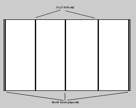 - drei Vierkantprofile 40x40 mm 1.000 mm lang