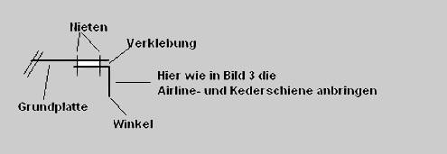 Falls das Abkanten nicht möglich ist, gibt es noch eine andere einfache Variante: Eine Grundplatte in der richtigen Größe zuschneiden, dann seitlich Winkel ankleben/nieten und daran dann die Alu-Kederschienen/Airline-Schienen von 70 mm Breite kleben/nieten (Bild 4, unten).