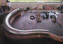 Jahrelang lagen diese Edelstahlteile also nun schon herum und ich scheute mich vor der vielen Arbeit. Speziell den Achsbogen zu schweißen hielt mich ab ... so viele Bögen und Winkel, die passen müssten … und dann erst noch das Maßnehmen an dieser Stelle unter dem Auto … ohje, ohje … darum meinte ich dort ein Flexrohr verwenden zu können, um mir das alles zu sparen ...
