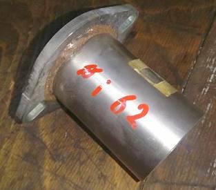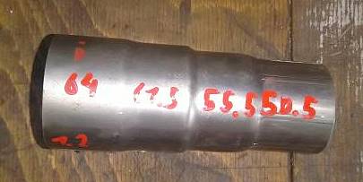 Das Flexrohr (das ja nun "übrig" war und auch weitere derartige Dinge wollen bekanntermaßen ja immer aufgebraucht werden) ist so dimensioniert, dass man aus dem oben gezeigten Stufenadapter das Mittelstück nutzen kann. Über den dünneren Teil des Stufenadapters rutscht das Flexrohr und der dickere Teil umfasst den Turboladerausgang exakt. Das Flexrohr hätte auch direkt drauf gepasst, aber dann wäre es mit der Klemmschelle wohl gequetscht worden, damit es fest sitzt. Das wäre keine schöne Lösung gewesen.