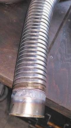 Das Flexrohr wollte ich eigentlich für den Achsbogen an der Hinterachse verwenden, um damit schon mal den vielen Rohrbögen und Schweißungen daran aus dem Weg zu gehen. Man merkt, die Unsicherheit und die Furcht davor war groß!