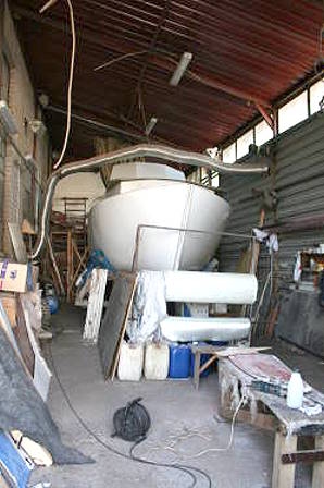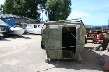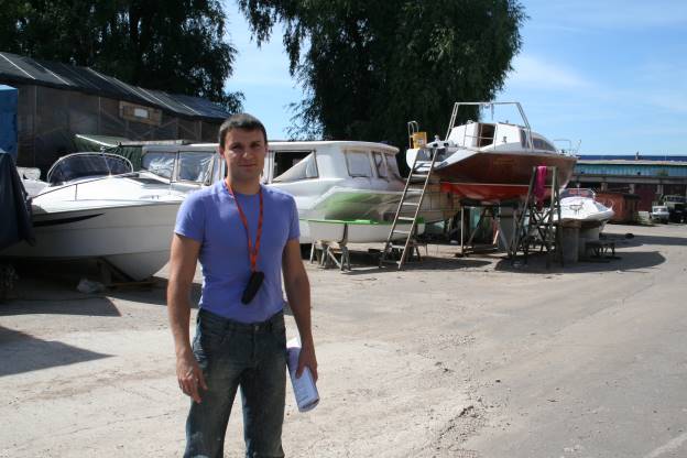 Wir stehen vor Pavels Werft, das Gelände liegt im Südosten der Stadt und wird bewacht: Hier kann man offenbar Kabinen und vor allem auch Boote bauen, wie wir sehen. Und das ist eigentlich Pavels hauptsächliches Gewerbe, das ihn und seine Mannschaft, die wir kurz darauf ebenfalls kennen lernen, für den GFK-Kabinenbau qualifiziert ...