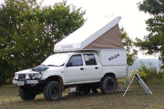 So sollte es dann erst ein Dachzelt werden, auf einem Gestell auf der Ladefläche montiert. Der Gedanke wurde aber bald verworfen: Denn was tun, wenn es mal regnet oder saukalt ist? Wieder im engen Auto sitzen? Nein! Unser 92er Taro Doppelkabiner sollte einen Alu-Rucksack bekommen. Aber selbst gebaut!
