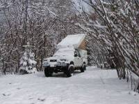 Verbrauchsmäßig liegt das Fahrzeug nun so zwischen 9,5 -10,5 l auf langen Strecken, recht viel weniger wurde auch vorher nicht benötigt. Obwohl an der Hinterachse nur ein normales OME Fahrwerk verbaut ist, war bis jetzt noch kein Einsacken der Blattfedern festzustellen. Spricht vielleicht auch für die Gewichtsverteilung, bei der alles Schwere nach vorn und unten verlagert wurde. Auf schlechten, rutschigen Wegen muss auch nicht mehr gleich der Allradantrieb zugeschaltet werden, das Gewicht der Kabine auf der Hinterachse macht sich positiv bemerkbar. Waren wir anfangs wegen der besseren Verschränkung noch ohne Stabilisator an der Vorderachse unterwegs, so habe ich den Stabi wegen des sicheren Kurvenverhaltens nun doch wieder eingebaut. Obwohl ich finde, dass die Seitenneigung der Starrachse mit Blattfedern vorn nicht so arg ist, als wenn dort eine Einzelradaufhängung verbaut wäre.