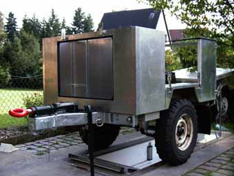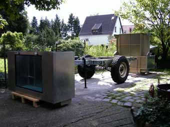 Wie die nachfolgenden Bilder zeigen, besteht der Aufbau aus einzelnen Baugruppen. Der Unterschied zu anderen Konstruktionen: Dieser Aufbau ist "waschstraßentauglich". Das soll kein ernst zu nehmendes Argument sein, aber von außen sichtbare Kanister oder Batterien wecken vielleicht Begehrlichkeiten ..?