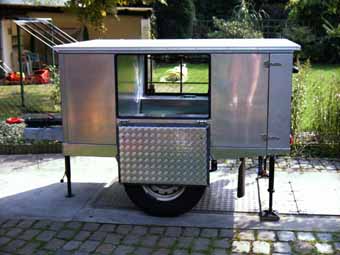 Ich erwähne nur Bernd von Ooy, Wildcat, Takla Makan und die anderen Geschichten - und die neue Idee war geboren: Schließlich hatte ich einen Anhänger und Erfahrung, was mit dem so alles geht. Eines geht aber auf jeden Fall nicht: In dem Ding kann man nicht schlafen, weil der Aufbau nur 1,80 m lang ist.