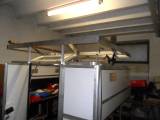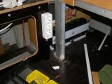 An der Decke vorne (links und rechts neben dem Schubladenblock) wurden Schienen mit Haken befestigt, um Kleidung oder andere Gegenstände platzsparend aufhängen zu können (Bild 14).