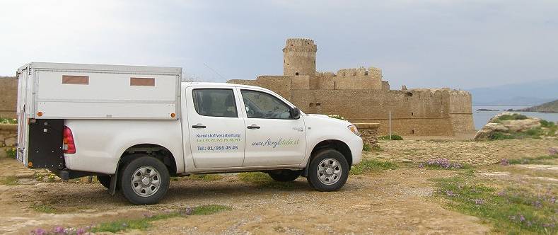 Im Oktober 2011 waren wir zum Entschluss gekommen, einen Aufbau für unseren Pickup selbst zu bauen. Erste Schritte zum Ziel waren Pläne und Zeichnungen, basierend auf den Abmessungen unseres Fahrzeugs, einem Toyota Pickup. Was die erforderlichen Kenntnisse und Fähigkeiten für einen derartigen Selbstbau anging, waren wir optimistisch: Nebenberufliche Mitarbeit bei einem Spezialbetrieb für Kunststoffverarbeitung sowie eine umfassende Lehrlingsausbildung bei der Telekom Austria in den Bereichen Holzbearbeitung, Feinmechanik und Elektronik sollten für unser Vorhaben von Nutzen sein.