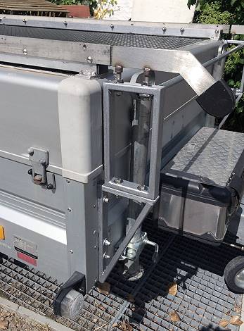 Es ist ja eine alte Weisheit, dass Umbau und oder Erweiterungen oft mehr Arbeit machen als ein kompletter Neubau. Das zeigte sich auch hier wieder: Ändert man irgendwo ein Maß, zieht dies das Nachbearbeiten an anderen Stellen nach sich. Der neue Hänger ist ja nicht nur länger und breiter als der alte, sondern auch insgesamt höher. Dadurch, dass das Zelt nun auch noch auf dem Deckel steht, erhöht sich das zusätzlich. So passten die zwei Stützen, die den vorderen Teil des Zeltes tragen, wenn es vom Deckel gezogen ist, in der Höhe auch nicht mehr. Die Anpassung war aber durch Austausch der mittleren 75 cm langen Trägerrohre gegen zwei mit einem Meter Länge relativ einfach.