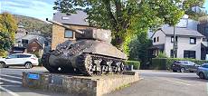 In diesem netten Städtchen steht nicht nur ein deutscher Hetzer Jagdpanzer direkt vor der Tür des Museums, sondern es ist noch ein amerikanischer Sherman auf einem Parkplatz als Monument ausgestellt und ein weiterer britischer M10 an anderer Stelle ...