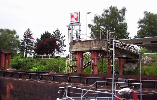 Die Brücke wurde zur Durchfahrt geöffnet Dienstag und Donnerstag von 22:00 - 5:00 Uhr und Samstags von 22:00 Uhr bis Sonntags 12:00 Uhr. Für Sportboote ist die Durchfahrt kostenlos. Wir mussten hier einige Tage ausharren. Erst im Oktober 2005 wurde die Pontonbrücke entfernt und die neu gebaute Brücke eröffnet. Somit ist die Durchfahrt wieder frei ...