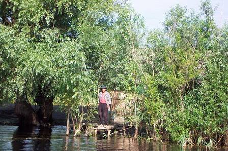 Nichts liegt mir ferner, als einen Mythos zu entzaubern, aber dieser geheimnisvolle Urwald, in dem Völker leben sollen, die noch nie ein Mensch gesehen hat, ist ein Märchen. Natürlich verändert sich die Sumpflandschaft ständig, doch die Haupt-Kanäle, die das Delta durchziehen, haben Namen und sind sogar beschildert. Kein vernünftiger Mensch wird sich mit einem Paddel- oder Schlauchboot in 3 bis 4 m hohes Schilf wagen und sich von den Schnaken fressen lassen. Die Kanalwelt ist ähnlich einem Labyrinth, verzweigt, unübersichtlich und jeder Kanal ähnelt dem anderen.. Hat man einmal die Orientierung verloren, ist es schwer ohne Hilfe wieder auf den rechten Weg zu finden. Doch über die Wasserwege und Kanäle des Deltas gibt es sogar Karten, nach denen man durchaus fahren kann. Ohne Kompass zu fahren ist nicht anzuraten und wir haben zur Sicherheit auch das GPS eingeschaltet. So konnten wir das Delta kreuz und quer befahren und genießen.