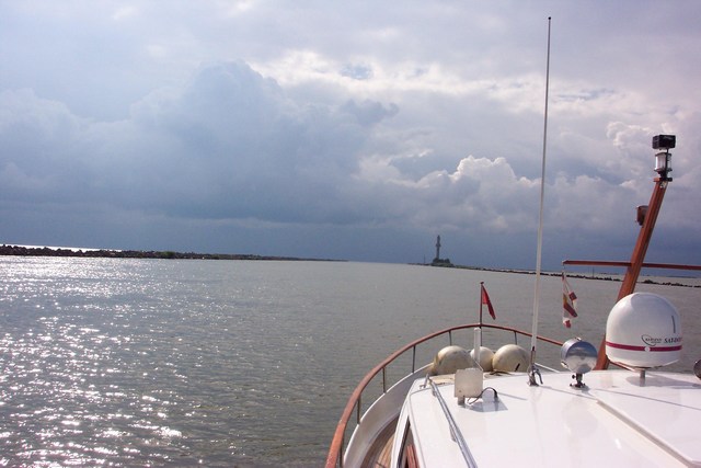 Unser Ziel war die ehemalige Quarantäne-Station Oltenita: Nicht, dass dieses Dorf irgend wie sehenswert wäre, doch hier lässt die Stentor-Werft von Sneek ihre Schiffe bauen. Für einen Freund sollten wir uns mal umschauen, wie sie so arbeiten und wie sie so sind. Die obligatorische Crew-Liste ließen wir bei der Capitania, die uns freundlich anbot, auf ihrem Ponto liegen zu bleiben, dann ging es Richtung Hafen. Leider waren in diesem Hafen Ausländer nicht erwünscht ...